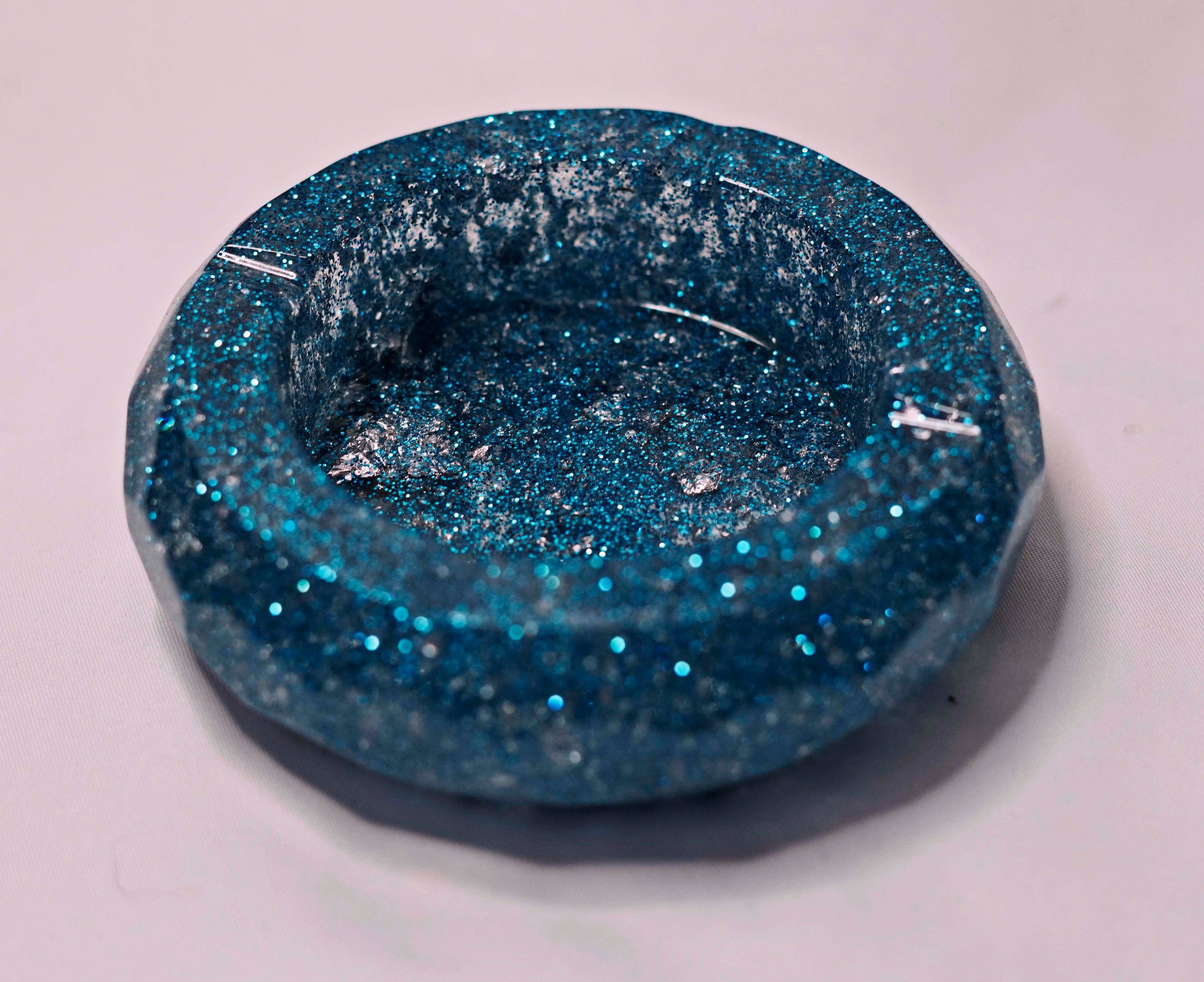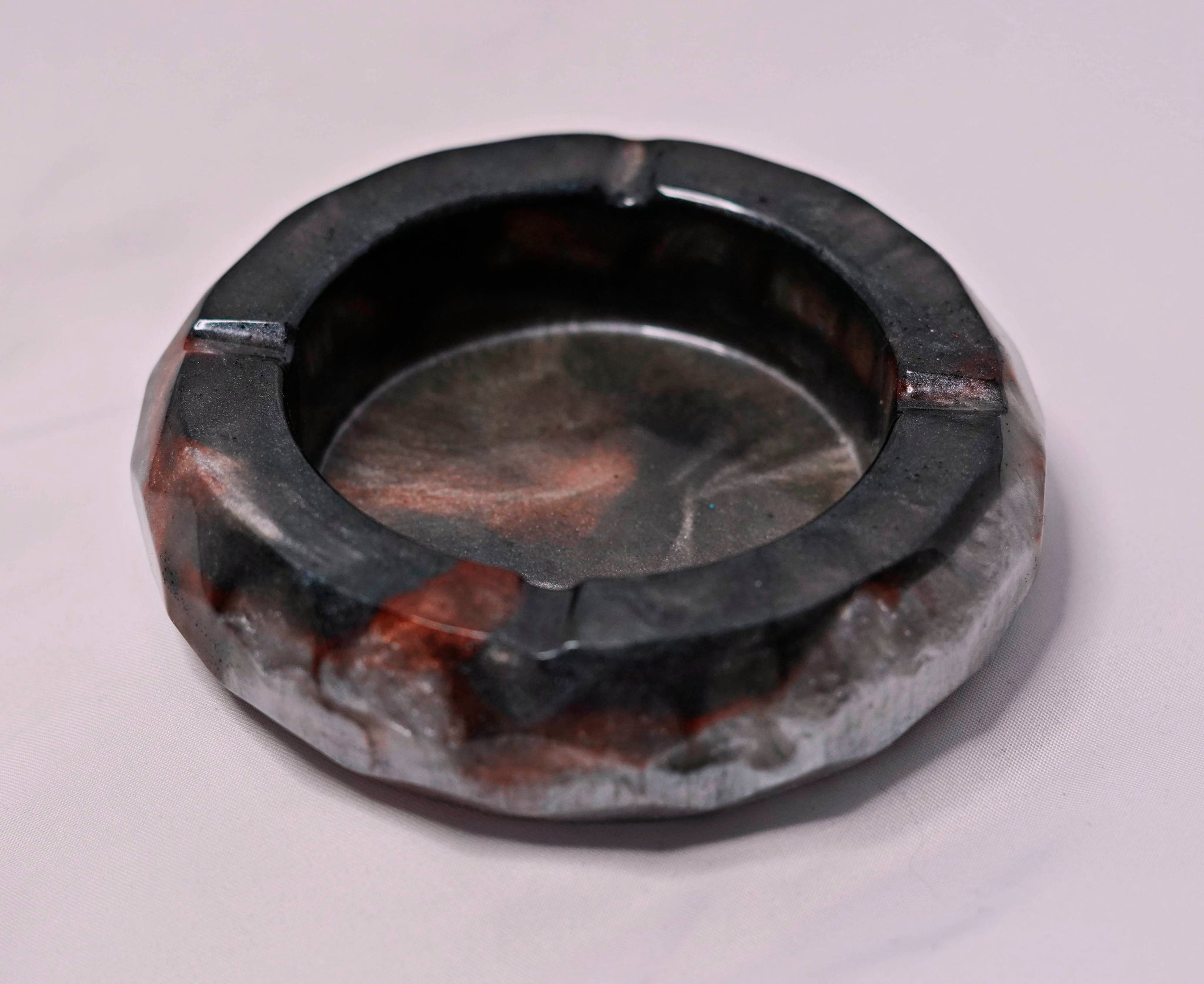 Handmade resin ash trays. Approximately 4x4 inches in size. Each ash tray is made completely out of pigmented resin. Each with their own unique look and design. Sold individually.