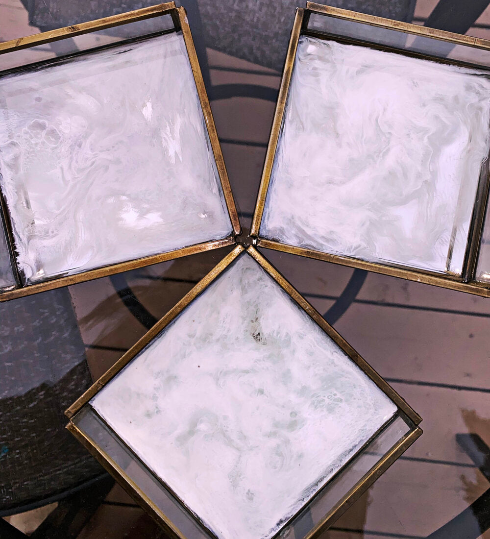 A set of three jewelry boxes, sold individually. Approx. 4x4 inches in size. Coated in pigmented resin. These are perfect for holding your jewelry or other small items on your bathroom counters. Made with neutral colors to tie it all together & match your existing decor.