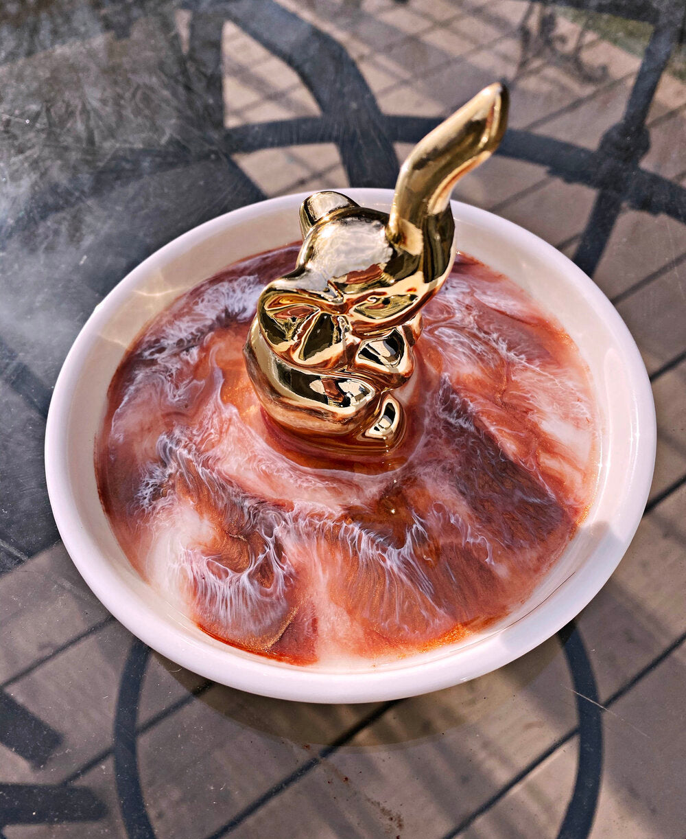 A 4x4 rounded decorative elephant dish coated in pigmented resin. Perfect for holding small jewelry or items.